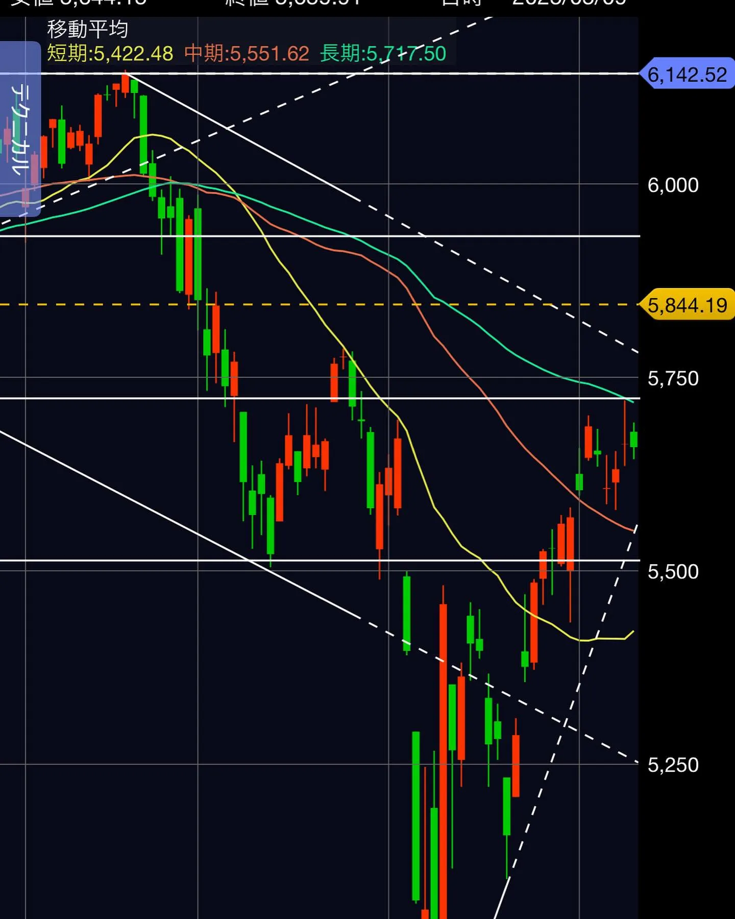 長期移動平均戦を大きく突破し、目下のところ