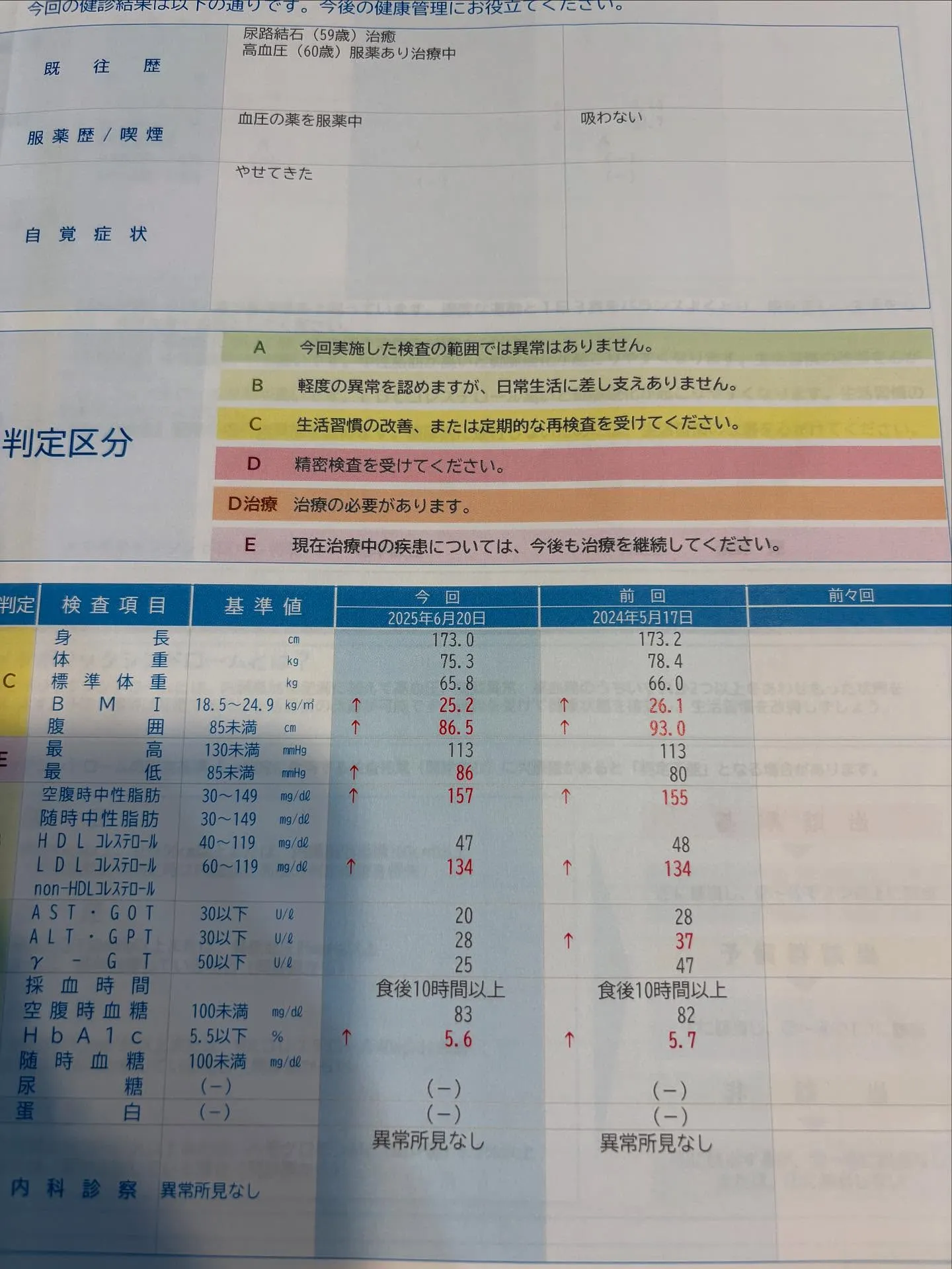 自分の健康診断結果が出ました。