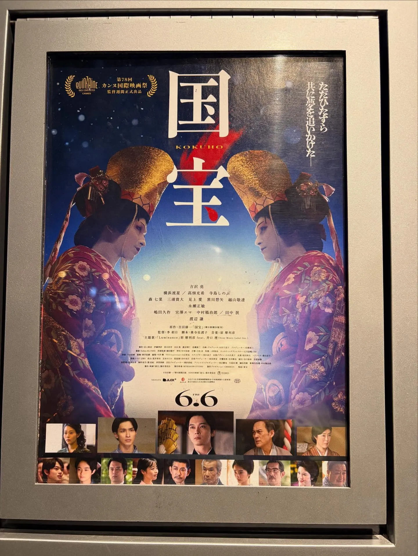 遅まきながら「国宝」観てきました。 2025/12/06 遅まきながら「国宝」観てきました。 梅田のシアターではまだ6〜7割入る盛況でした。 ネタバレにならない感想を言いますと、 芸道を極める過程の超絶人間ドラマでした。 画像が限りなく美しい場面が多く、 このコントラストがリピーターを呼んでいると 思います。
